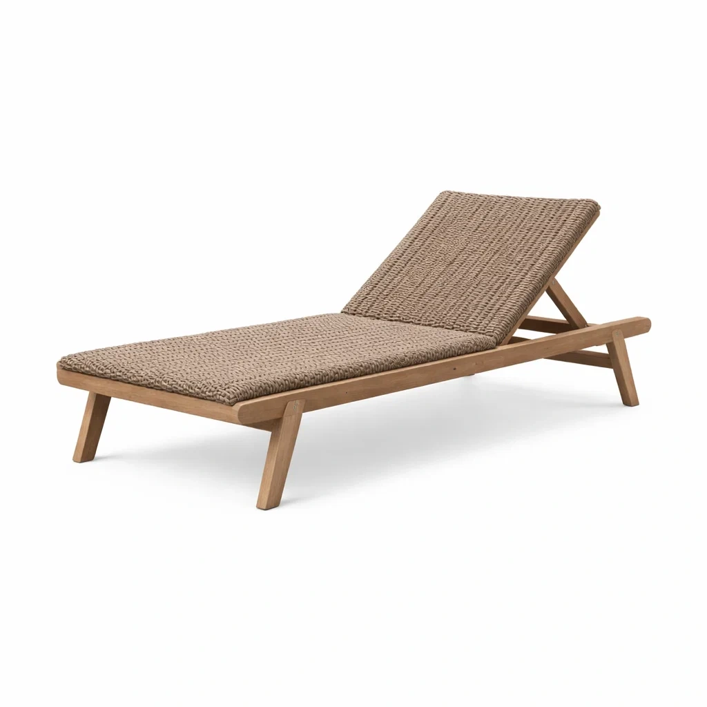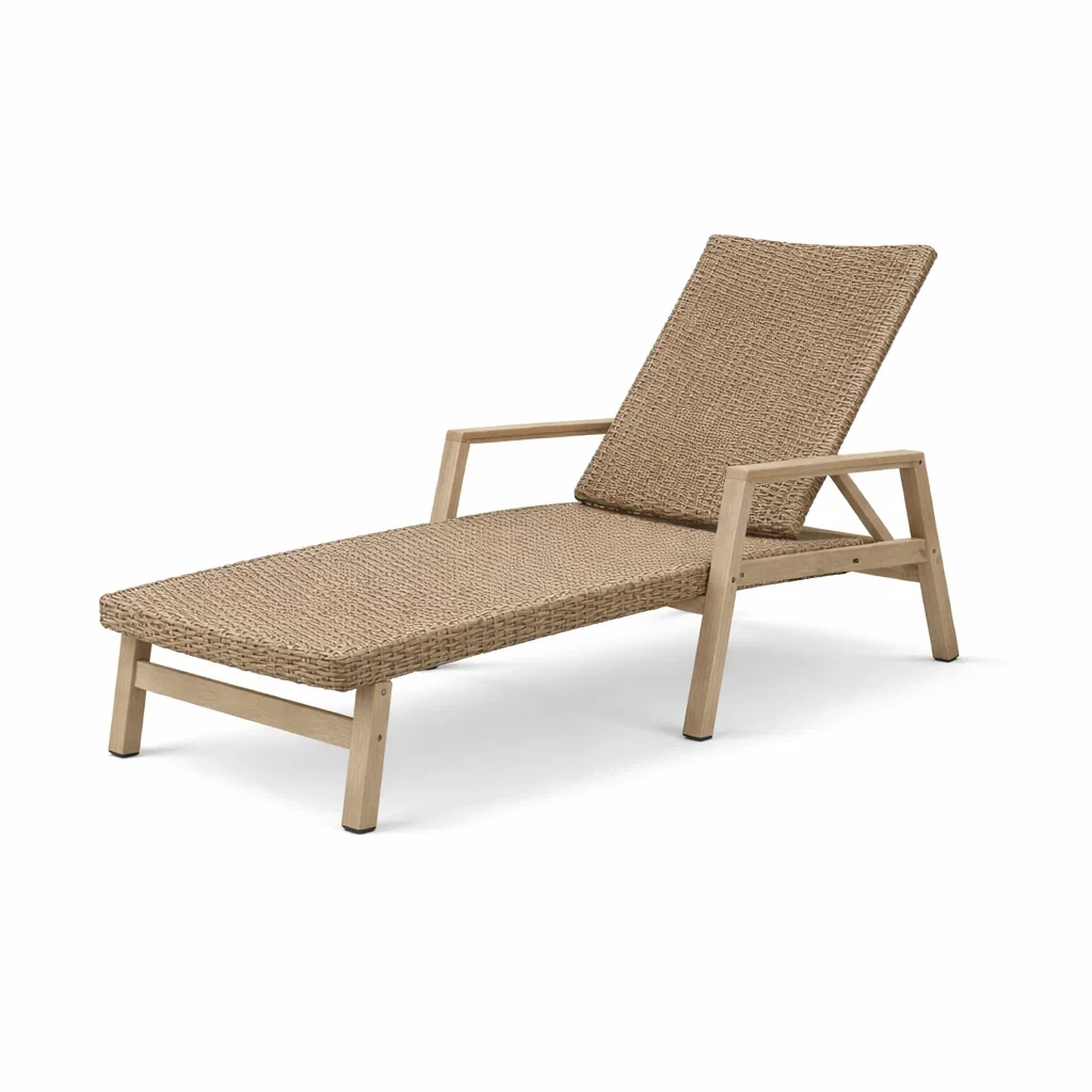 Lettino prendisole in legno di acacia e rattan naturale