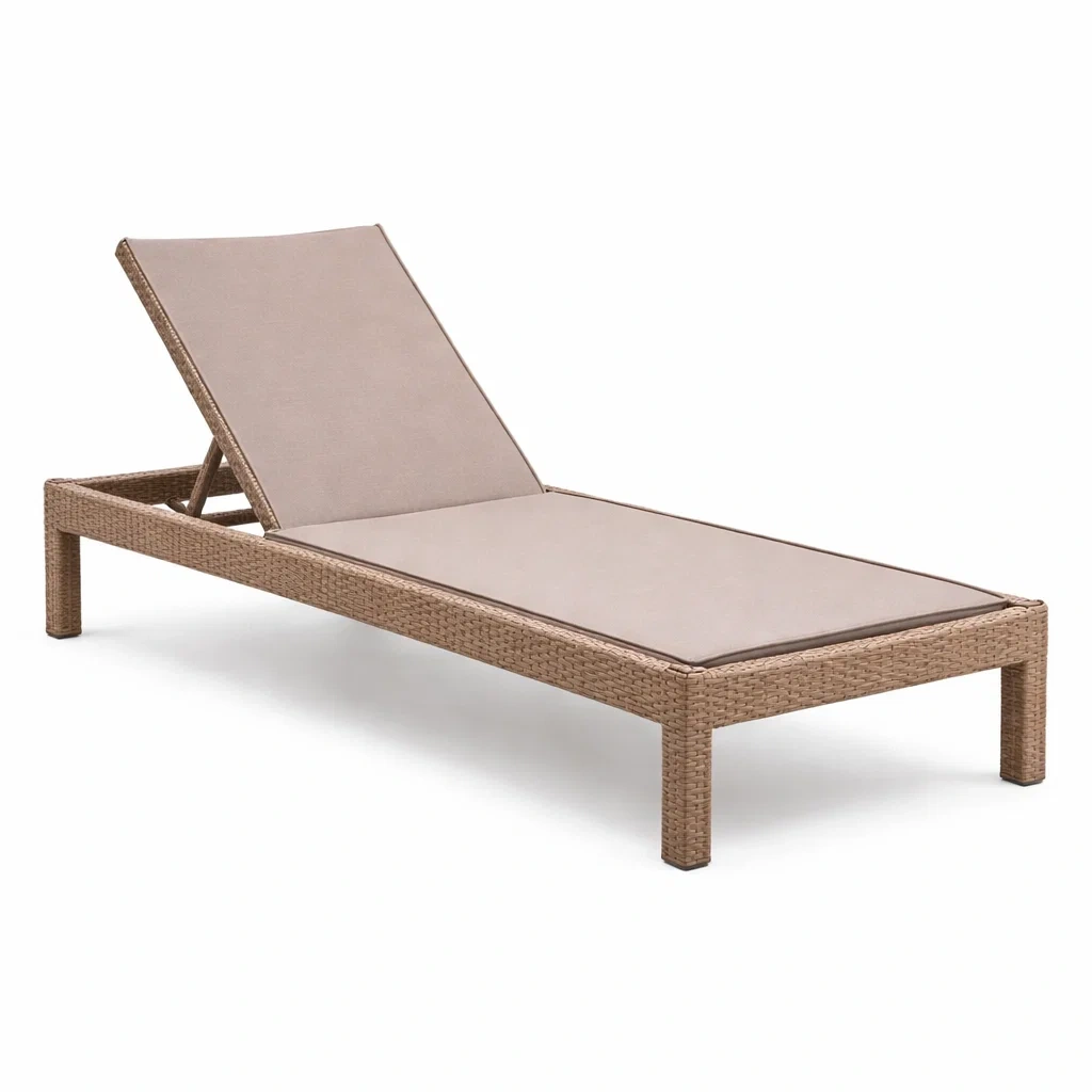 Lettino prendisole in legno e rattan sintetico marrone