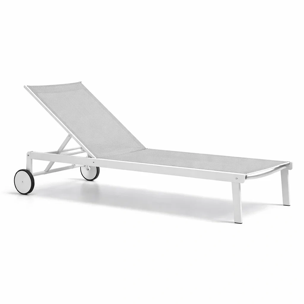 Lettino prendisole in alluminio con ruote regolabile bianco