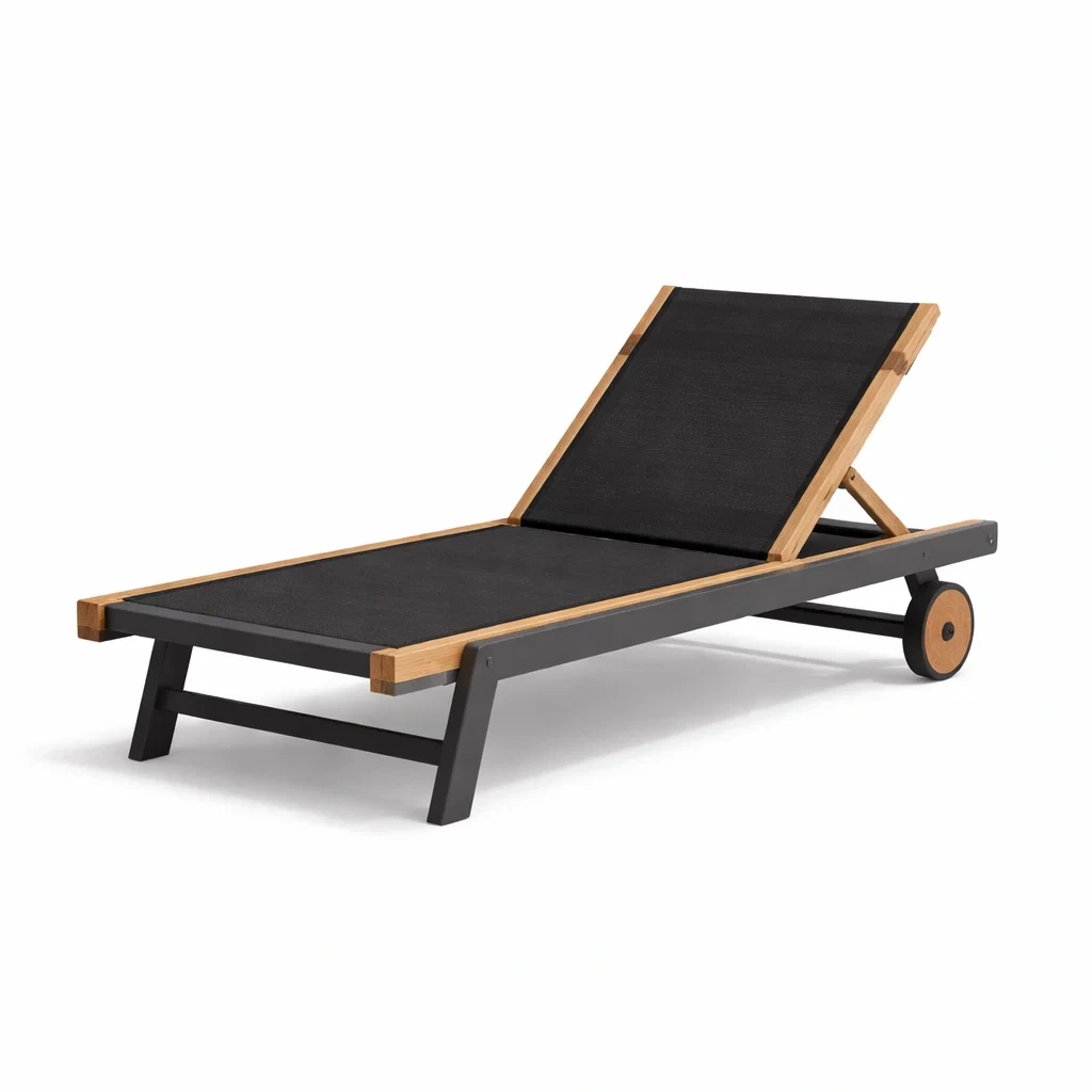 Lettino prendisole in legno di teak e metallo nero
