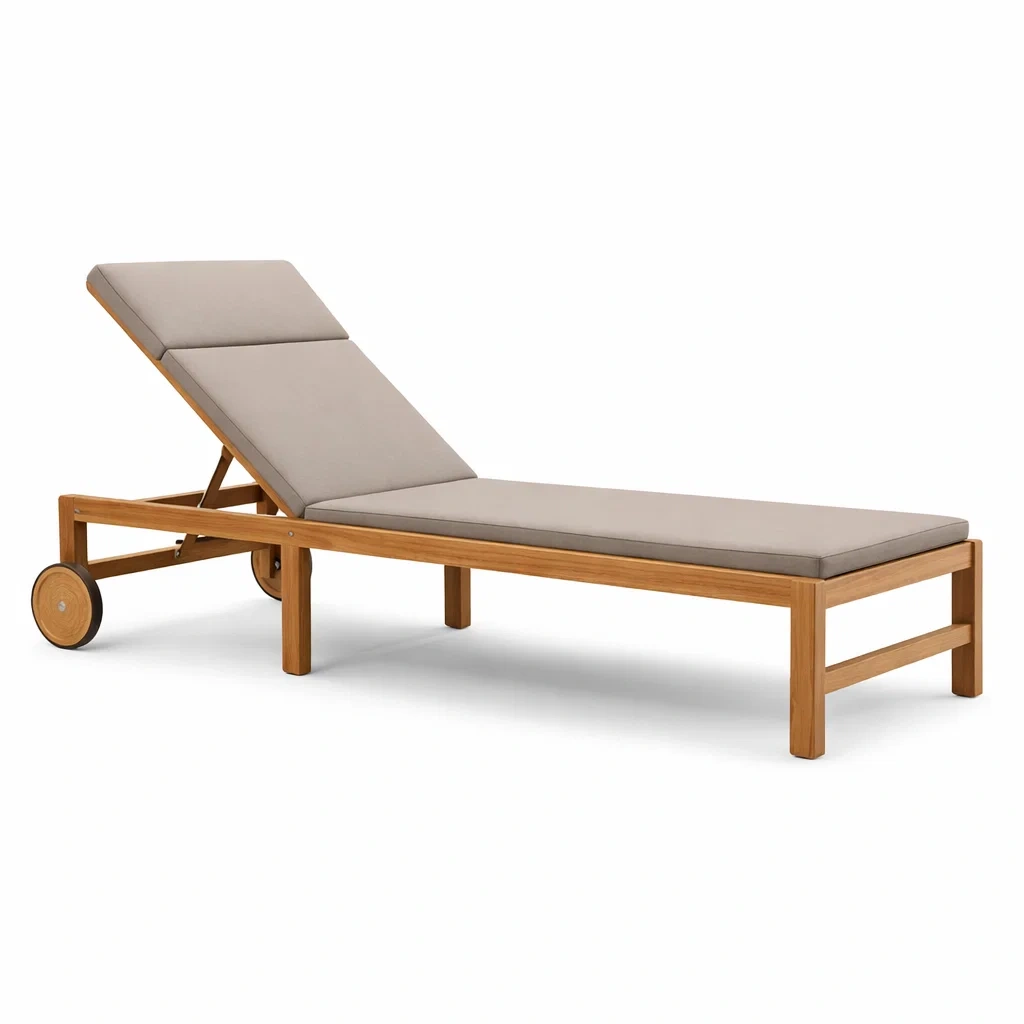 Lettino in legno di teak e alluminio con rivestimento in poliestere
