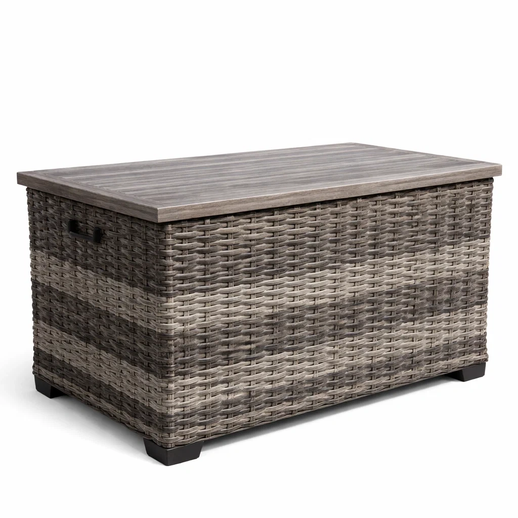 Materiale: Struttura in rattan sintetico, coperchio in legno MDF.