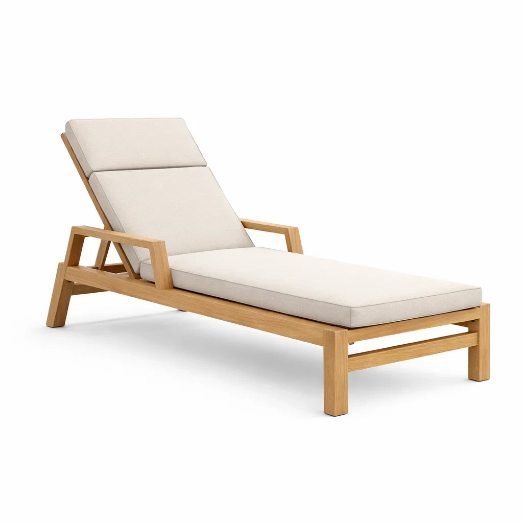 Lettino prendisole in legno di teak con cuscino beige 200x65x35 cm