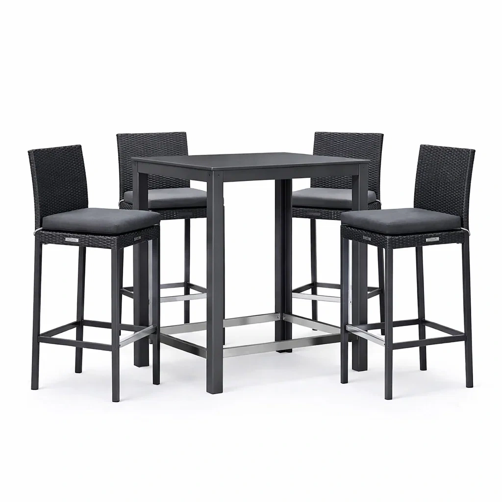 Il set include un tavolo e quattro sedie da bar.