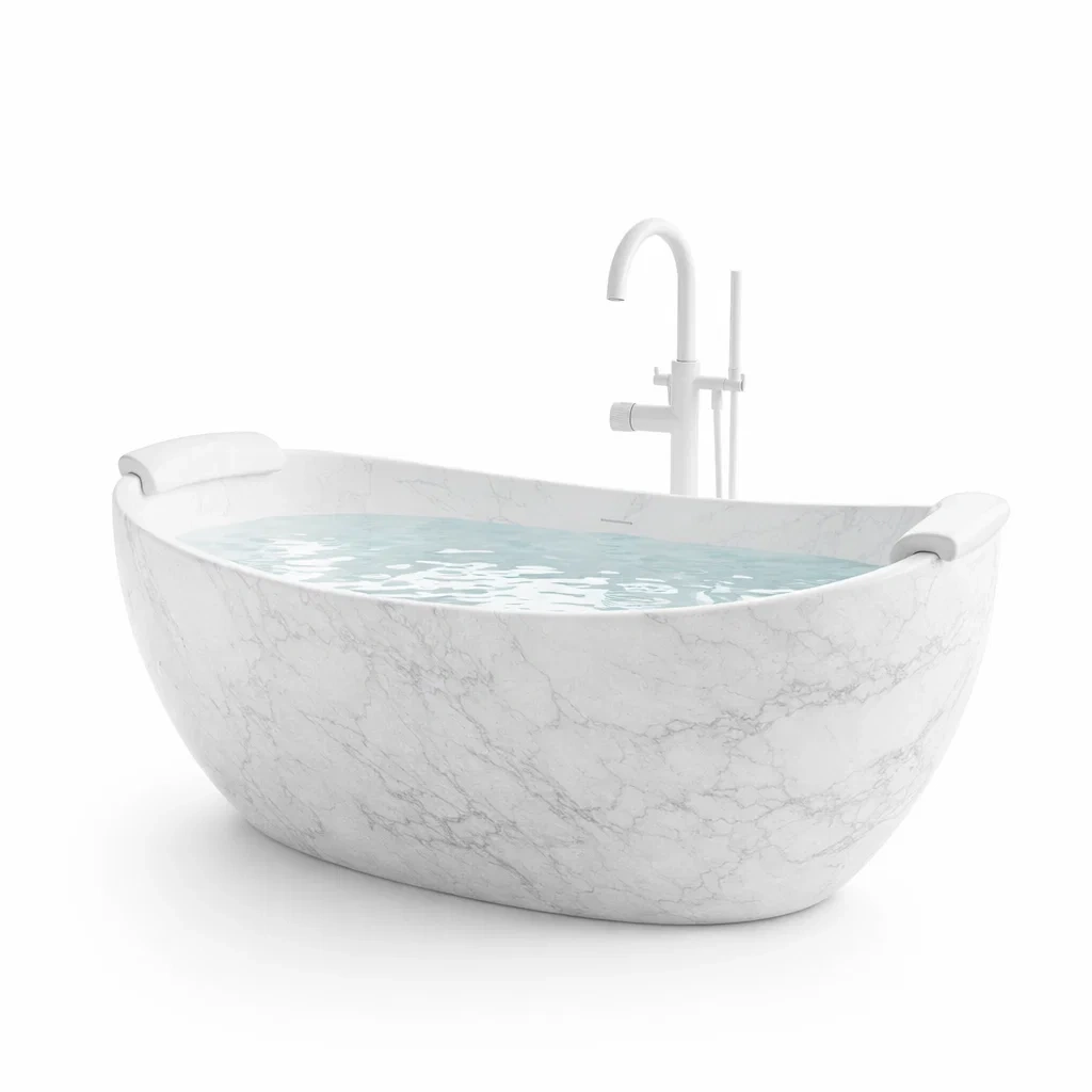 La vasca è progettata per offrire comfort con il suo ampio spazio interno. Pulire con detergenti delicati e usare un panno morbido per mantenere la finitura del marmo.